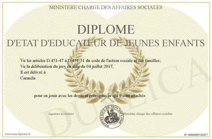 Envoyez par email votre Diplôme d'Etat d'Educateur de Jeunes Enfants personalisé