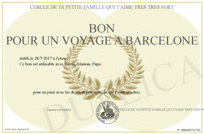 Envoyez par email votre BON POUR UN VOYAGE A BARCELONE personalisé