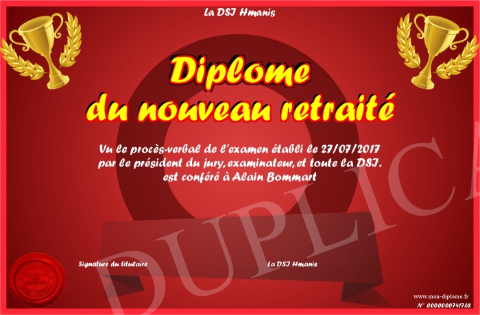 Envoyez par email votre Diplôme du nouveau retraité personalisé