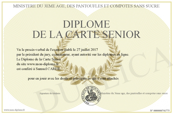 Envoyez par email votre Diplôme de la Carte Sénior personalisé