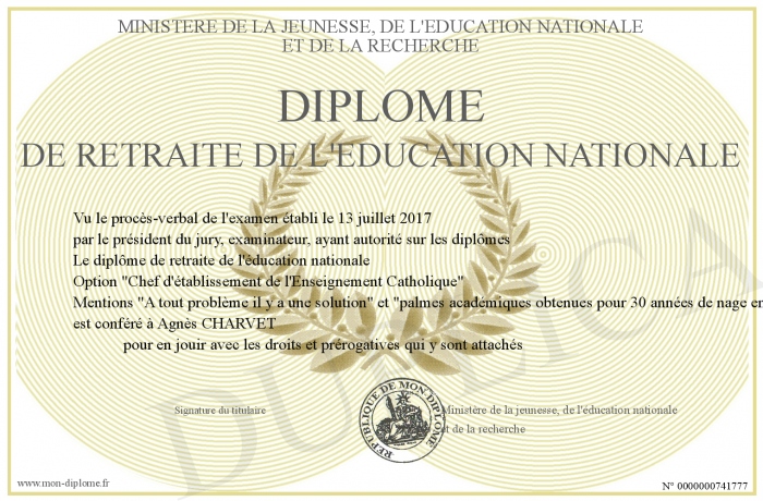 Envoyez par email votre Diplôme de retraite de l'éducation nationale personalisé