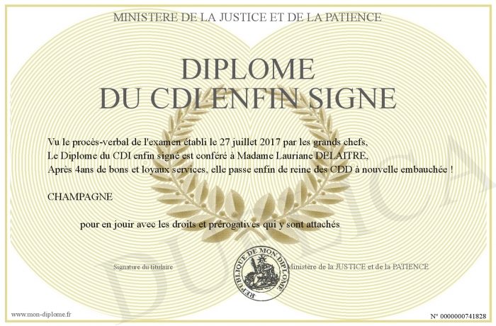 Envoyez par email votre Diplôme du CDI enfin signé personalisé