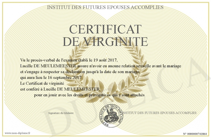 Envoyez par email votre Certificat de virginité personalisé
