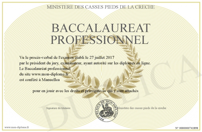 Envoyez par email votre Baccalauréat professionnel personalisé