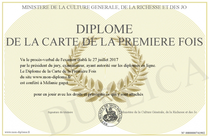 Envoyez par email votre Diplôme de la Carte de la Première Fois personalisé