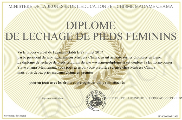 Envoyez par email votre DIPLOME DE LECHAGE DE PIEDS FEMININS personalisé