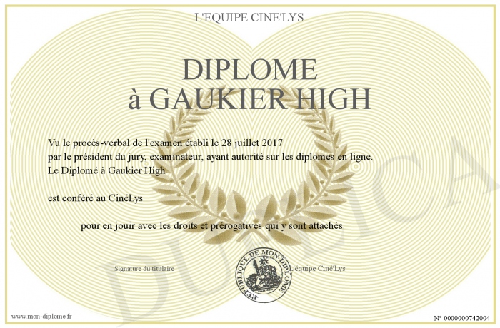Envoyez par email votre Diplômé à Gaukier High personalisé