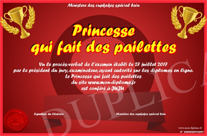 Envoyez par email votre Princesse qui fait des pailettes personalisé