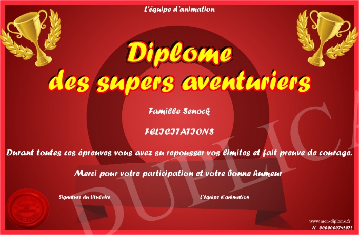 Envoyez par email votre Diplôme des supers aventuriers personalisé