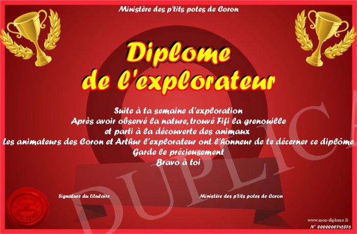 Envoyez par email votre Diplôme de l'explorateur personalisé