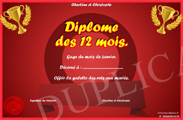 Envoyez par email votre Diplôme des 12 mois. personalisé