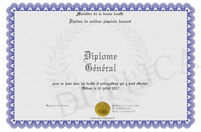 Envoyez par email votre Diplome Général personalisé