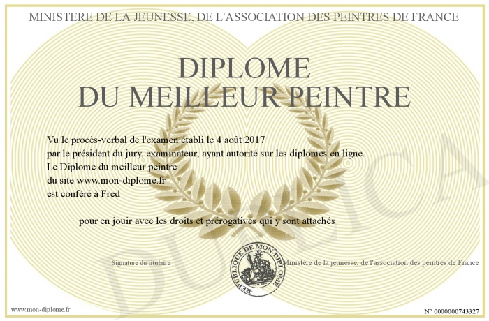 Envoyez par email votre Diplôme du meilleur peintre personalisé