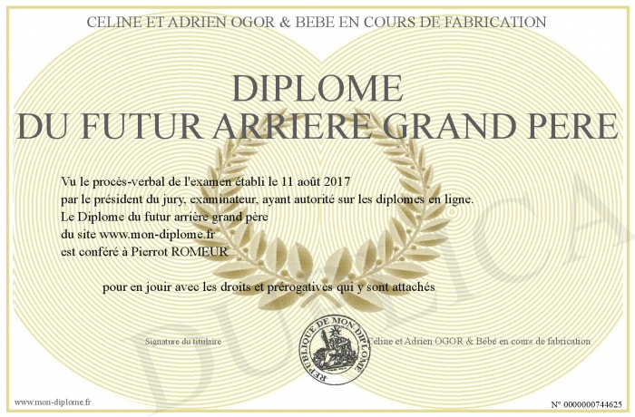 Envoyez par email votre Diplôme du futur arrière grand père personalisé