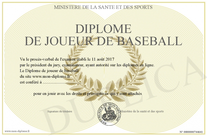 Envoyez par email votre Diplôme de joueur de baseball personalisé