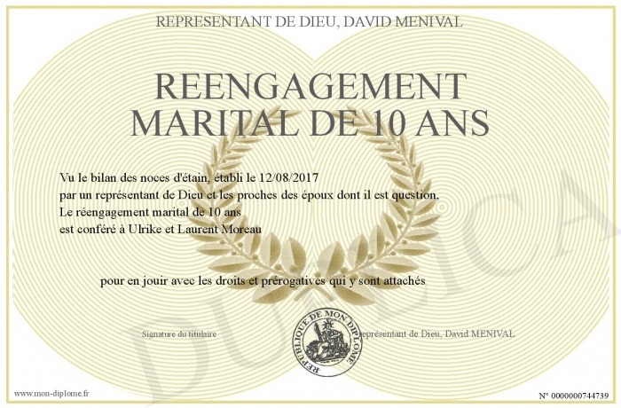 Envoyez par email votre réengagement marital de 10 ans personalisé