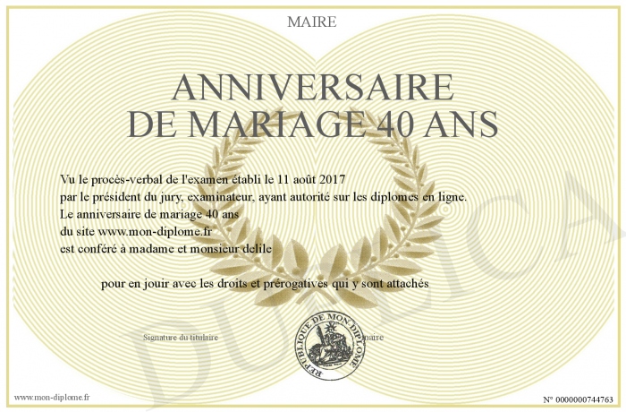 Envoyez par email votre anniversaire de mariage 40 ans personalisé