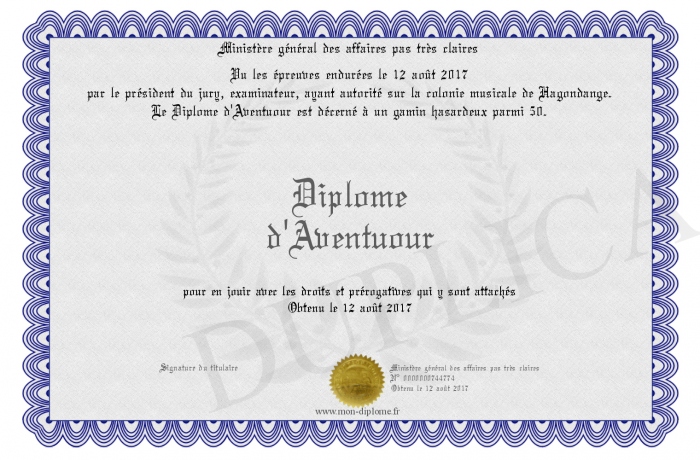 Envoyez par email votre Diplôme d'Aventuour personalisé