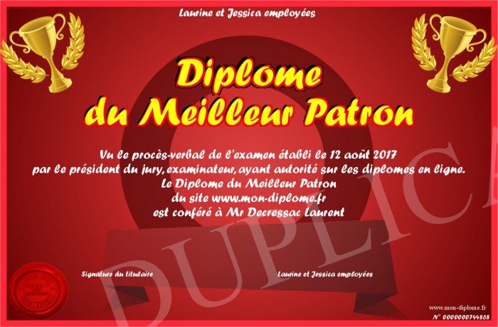Envoyez par email votre Diplôme du Meilleur Patron personalisé