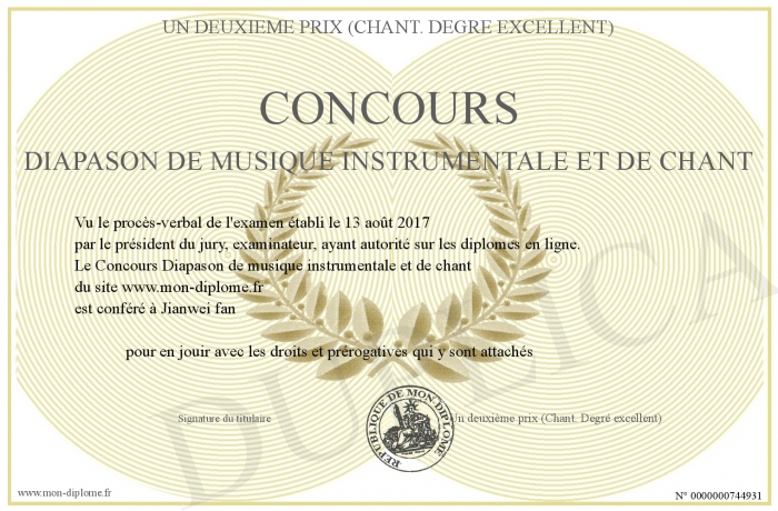 Envoyez par email votre Concours Diapason de musique instrumentale et de chant personalisé