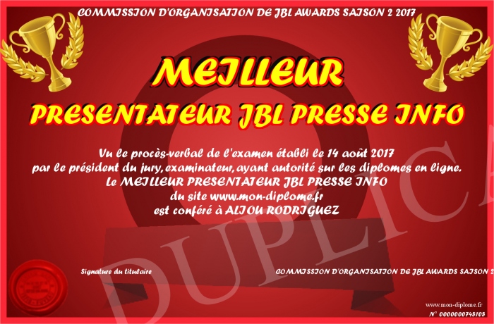 Envoyez par email votre MEILLEUR PRESENTATEUR JBL PRESSE INFO personalisé