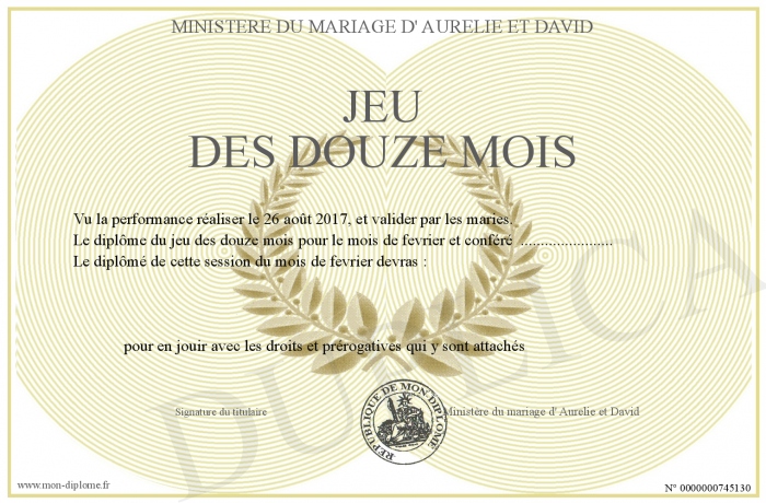 envoyé par le Ministère du mariage d' Aurelie et David !