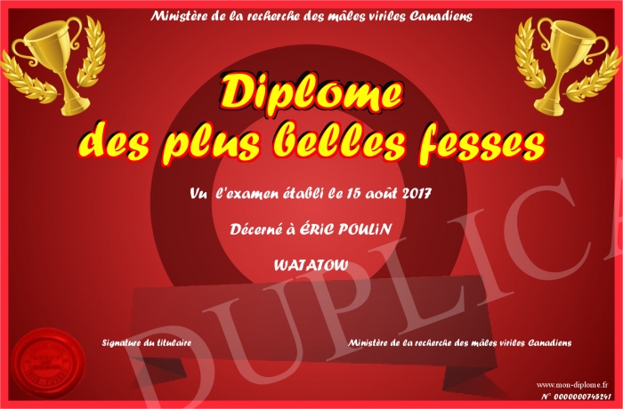Envoyez par email votre Diplôme des plus belles fesses personalisé