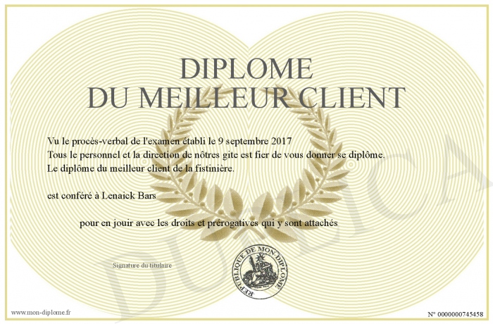 Envoyez par email votre Diplôme du meilleur client personalisé