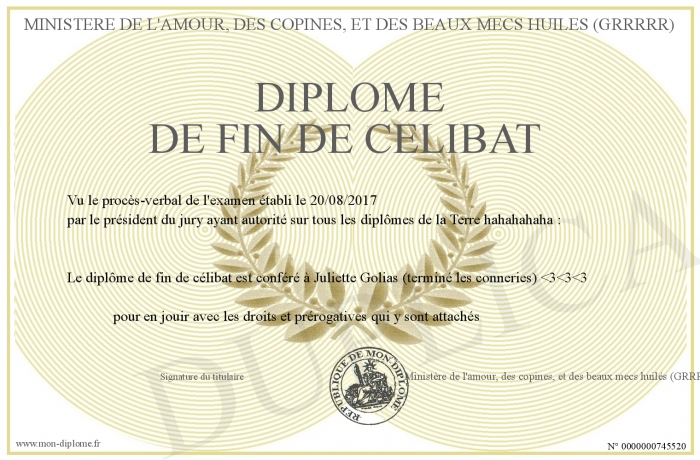 Envoyez par email votre Diplôme de fin de célibat personalisé