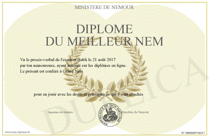 Envoyez par email votre Diplôme du meilleur Nem personalisé
