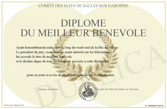 Envoyez par email votre Diplôme du meilleur bénévole personalisé