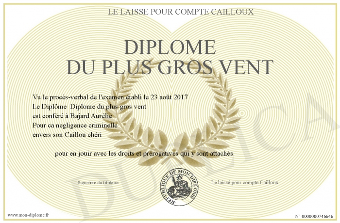 Envoyez par email votre Diplôme du plus gros vent personalisé