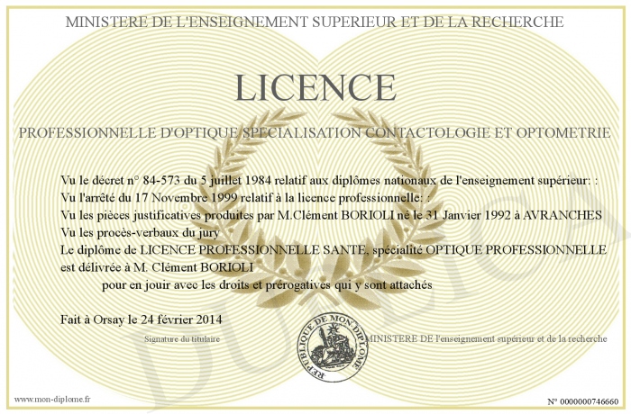 Envoyez par email votre LICENCE PROFESSIONNELLE D'OPTIQUE SPECIALISATION CONTACTOLOGIE ET OPTOMETRIE personalisé