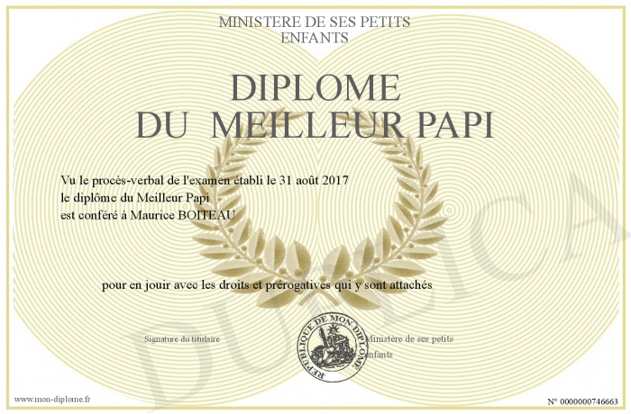 Envoyez par email votre Diplôme du Meilleur Papi personalisé
