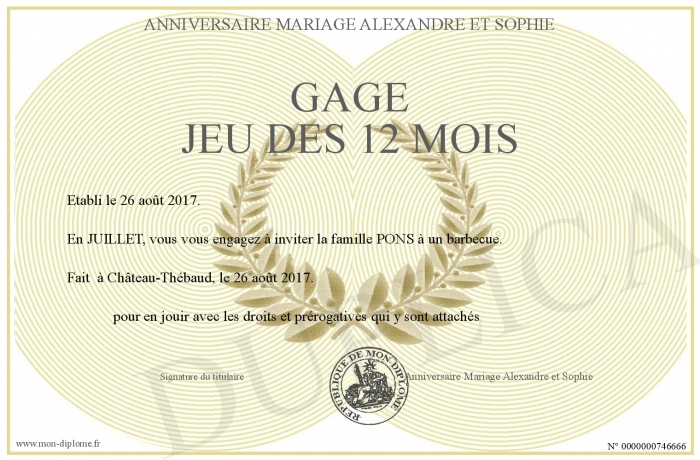 Envoyez par email votre GAGE JEU DES 12 MOIS personalisé
