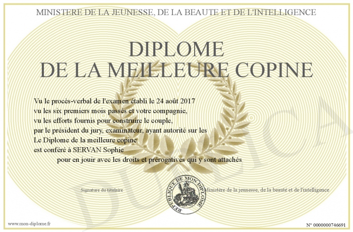 Envoyez par email votre Diplôme de la meilleure copine personalisé