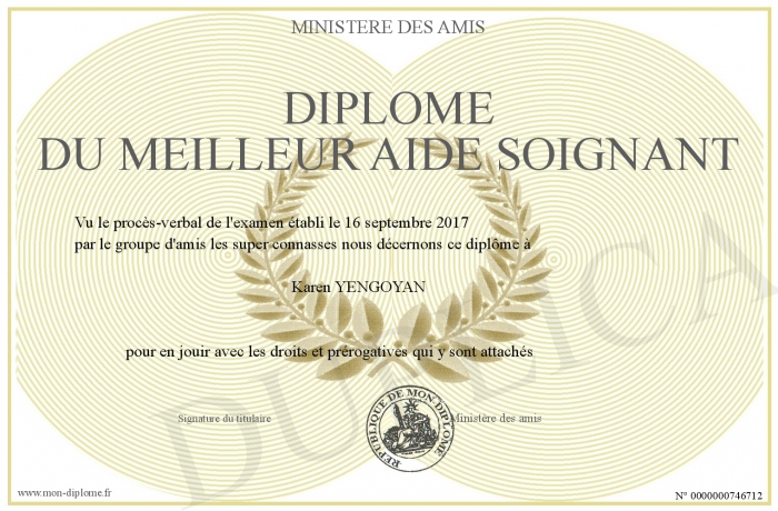 Envoyez par email votre Diplôme du meilleur aide soignant personalisé