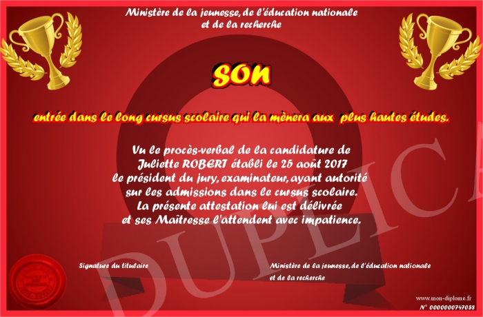 Envoyez par email votre son entrée dans le long cursus scolaire qui la mènera aux plus hautes études. personalisé