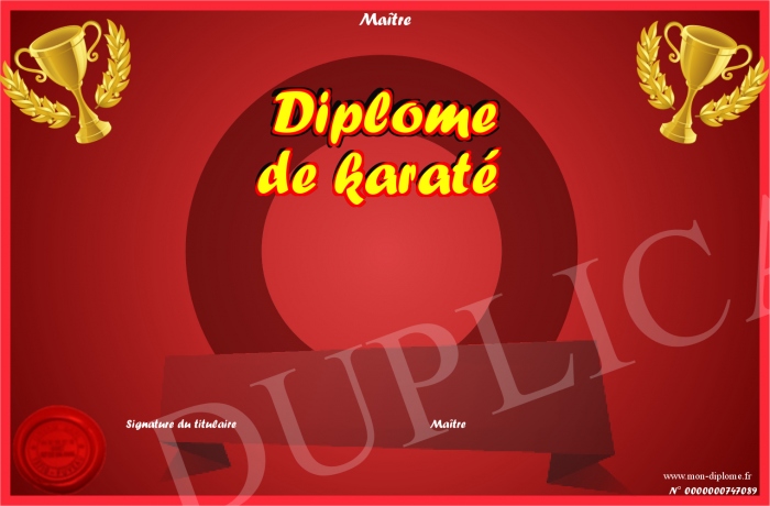 Envoyez par email votre Diplôme de karaté personalisé