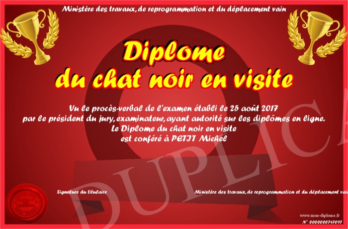 Envoyez par email votre Diplôme du chat noir en visite personalisé
