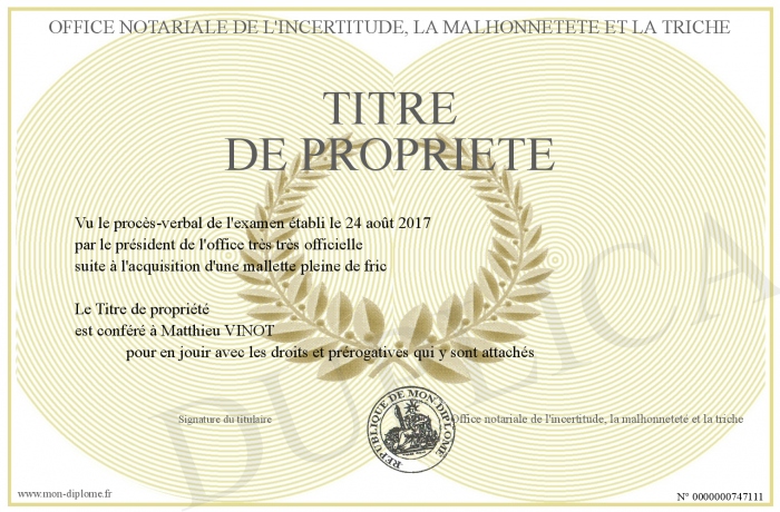 envoyé par le Office notariale de l'incertitude, la malhonneteté et la triche !