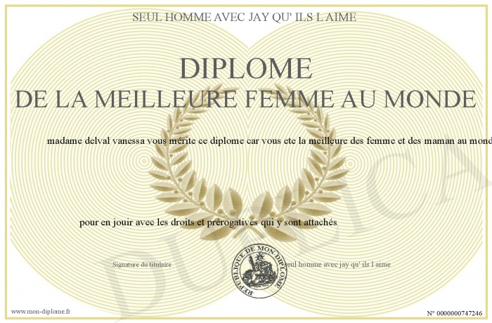 Envoyez par email votre Diplôme de la meilleure femme au monde personalisé