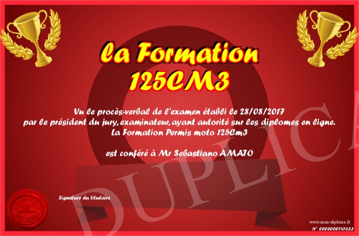 Envoyez par email votre la Formation 125CM3 personalisé