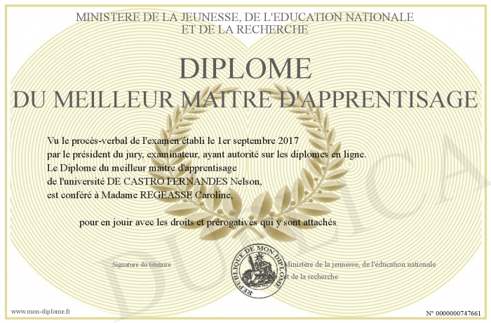 Envoyez par email votre Diplôme du meilleur maitre d'apprentisage personalisé