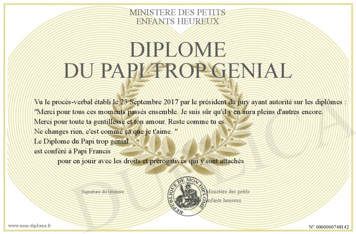 Envoyez par email votre Diplôme du Papi trop génial personalisé
