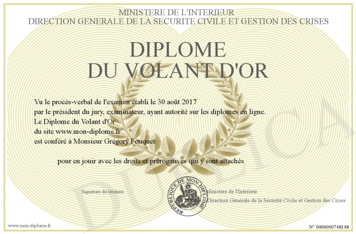 Envoyez par email votre Diplôme du Volant d'Or personalisé