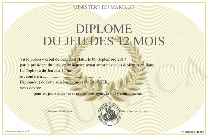 Envoyez par email votre Diplôme du Jeu des 12 mois personalisé