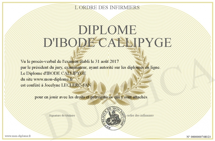 Envoyez par email votre Diplôme d'IBODE CALLIPYGE personalisé
