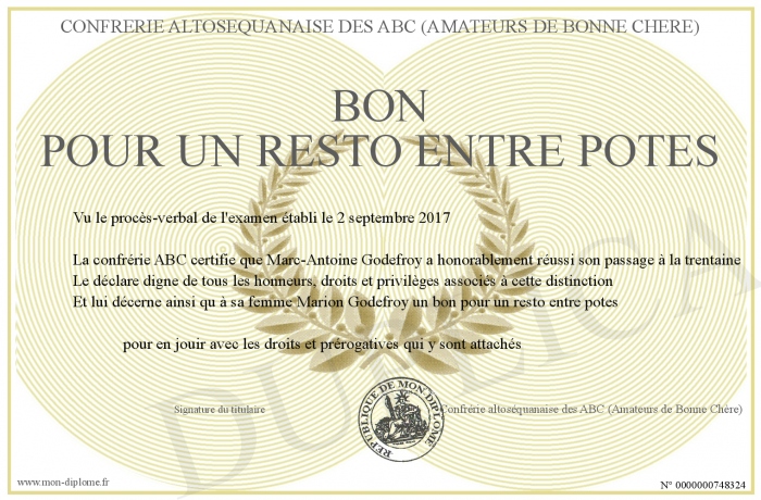 envoyé par le Confrérie altoséquanaise des ABC (Amateurs de Bonne Chère) !