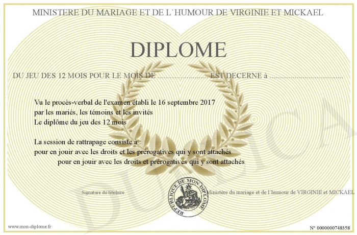 Envoyez par email votre Diplôme du jeu des 12 mois pour le mois de .......................... est décerné à ...................................... personalisé